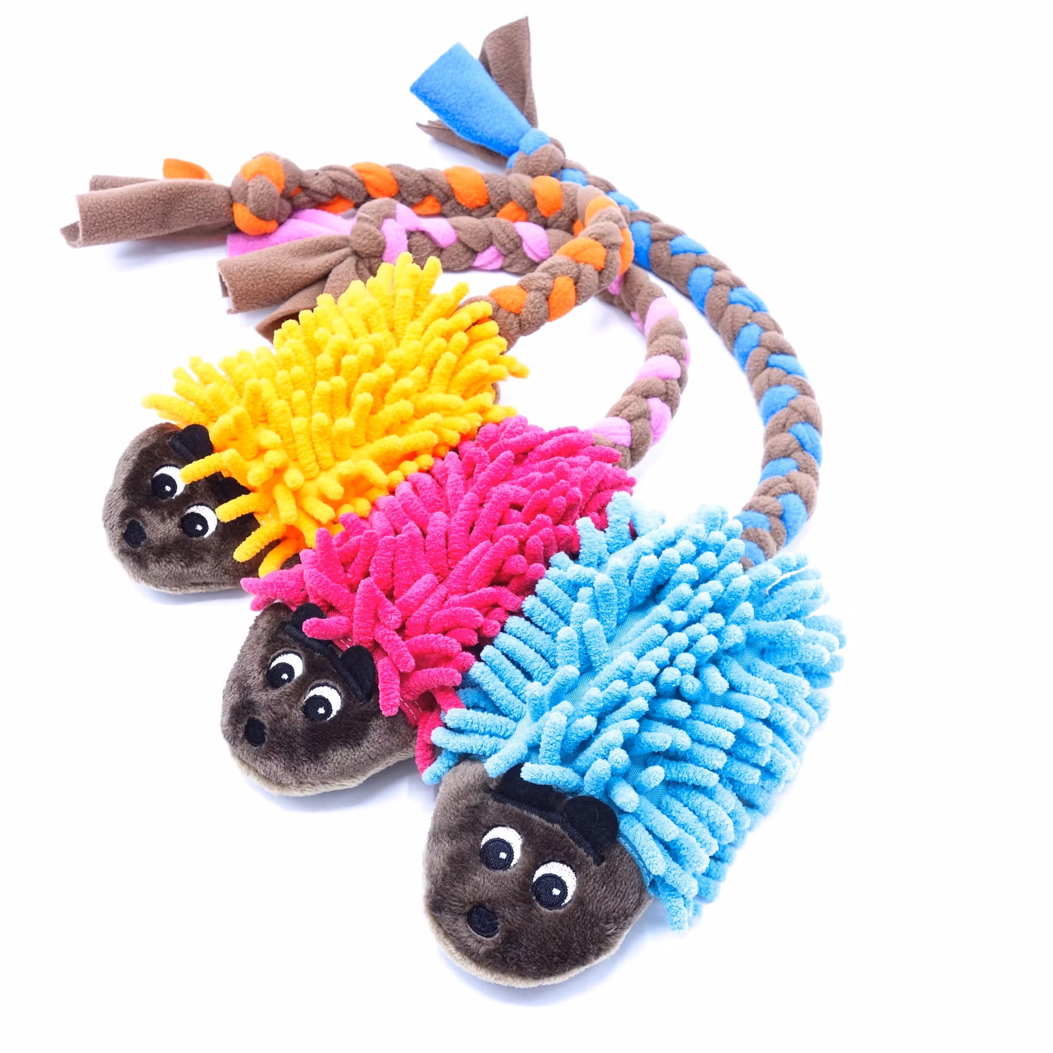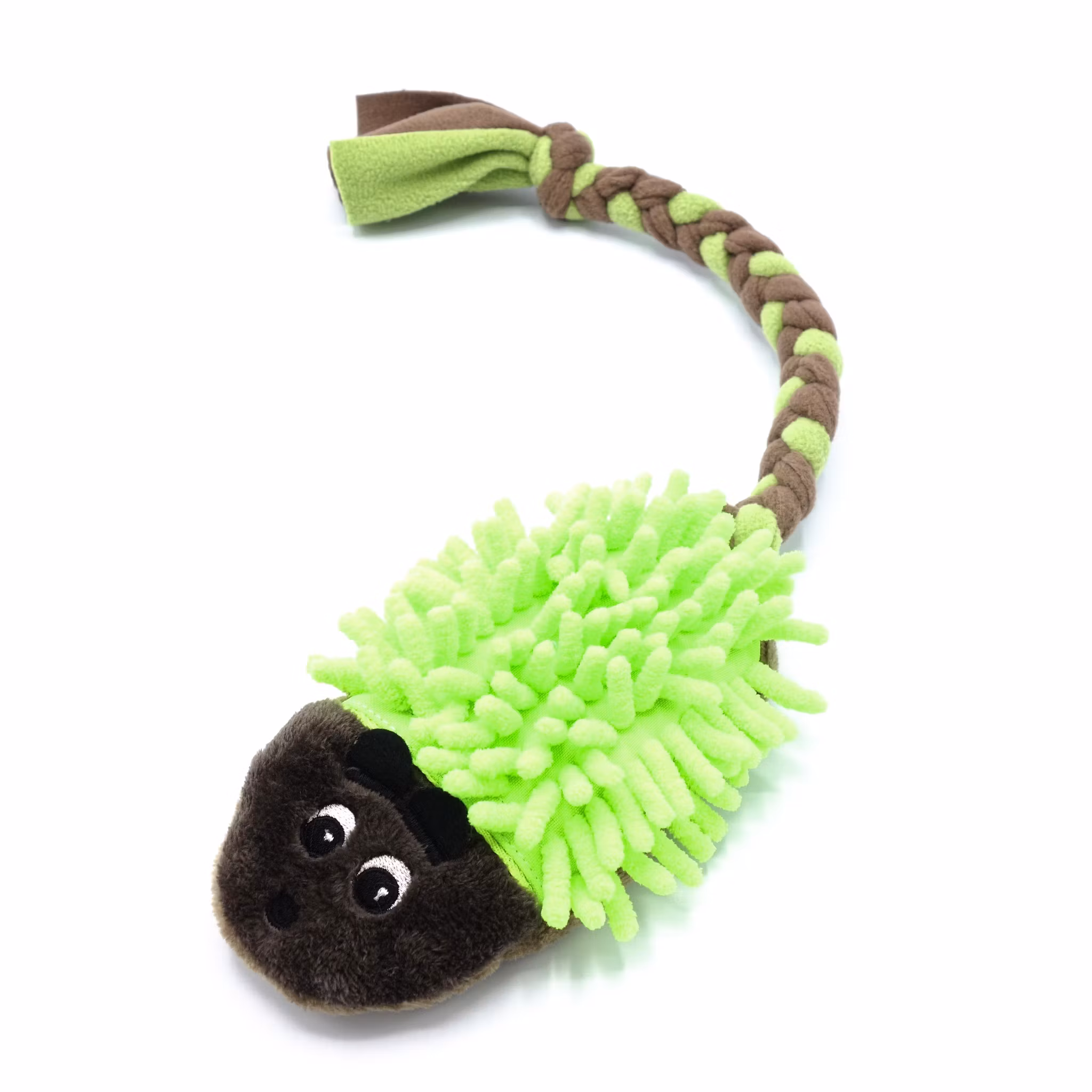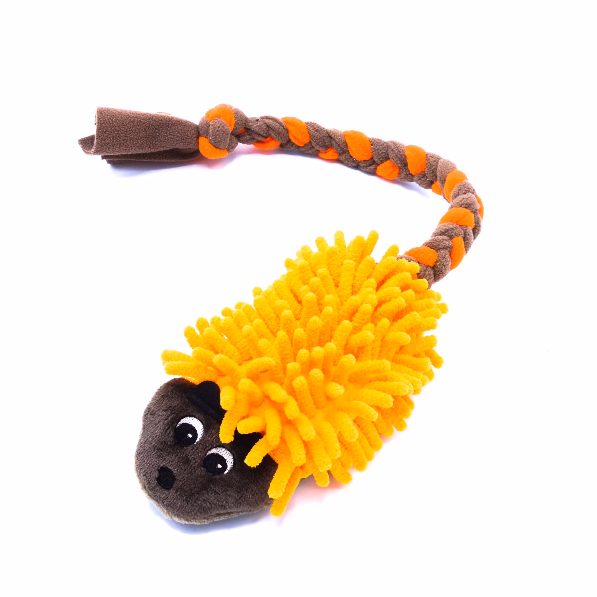 Igelkotten i kombination med pip och mopp skapade en mycket attraktiv leksak för hundarna. Leksaken är utan fyllning, så det uppmuntrar inte hunden att "dra ut" fyllningen. För bättre hållbarhet sys leksaken av två lager tyg. En igelkott med en svans av fleece kommer att vara en utmärkt motivation för din hund under träning. Fleece svansen är ordentligt sydd i kroppen, perfekt för att dra.